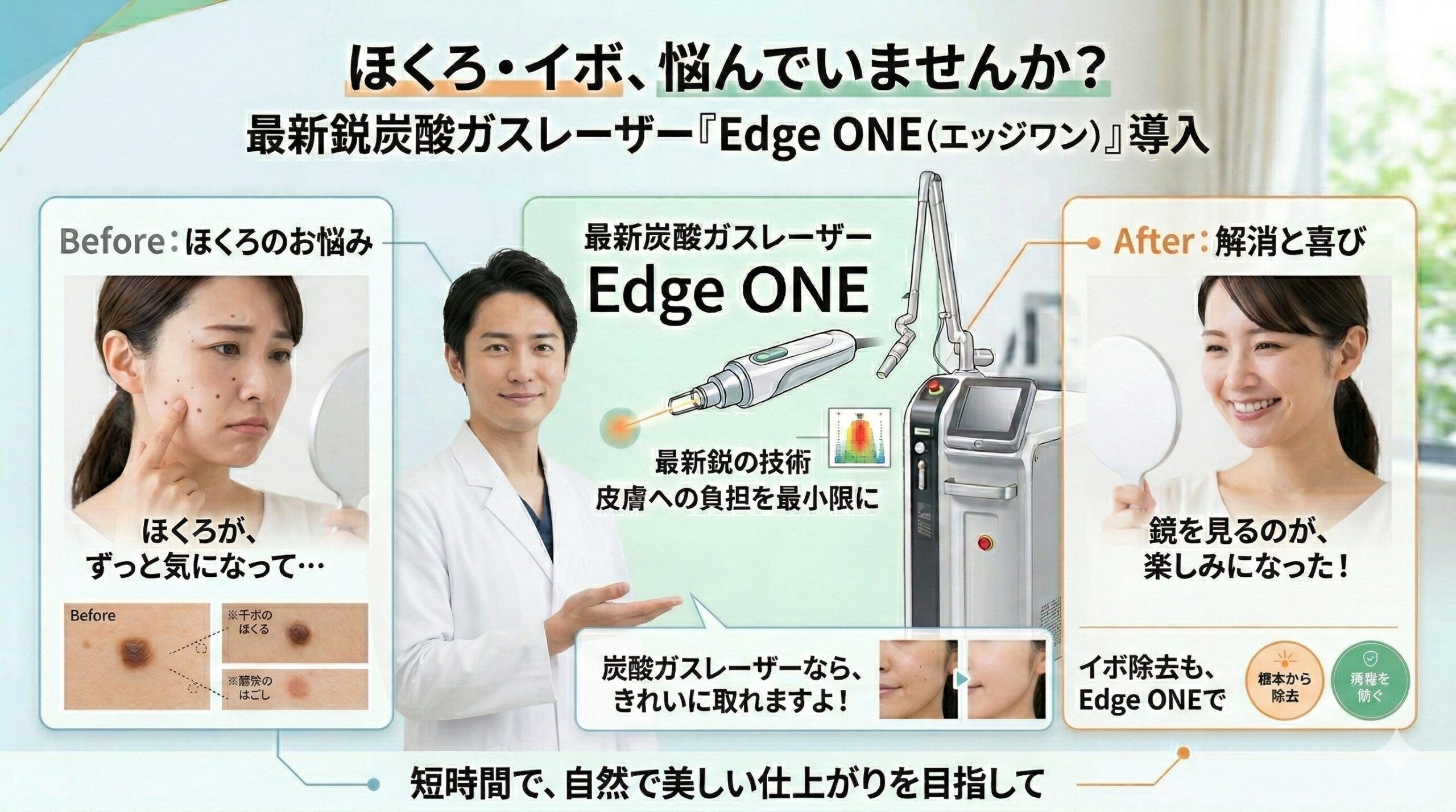タイトル:【お知らせ】ほくろ・イボの炭酸ガスレーザー治療を開始いたしました(最新機器「Edge ONE」導入)